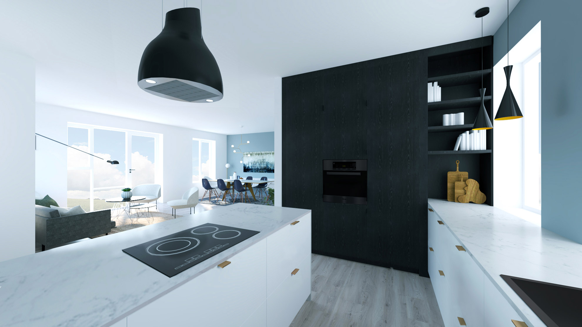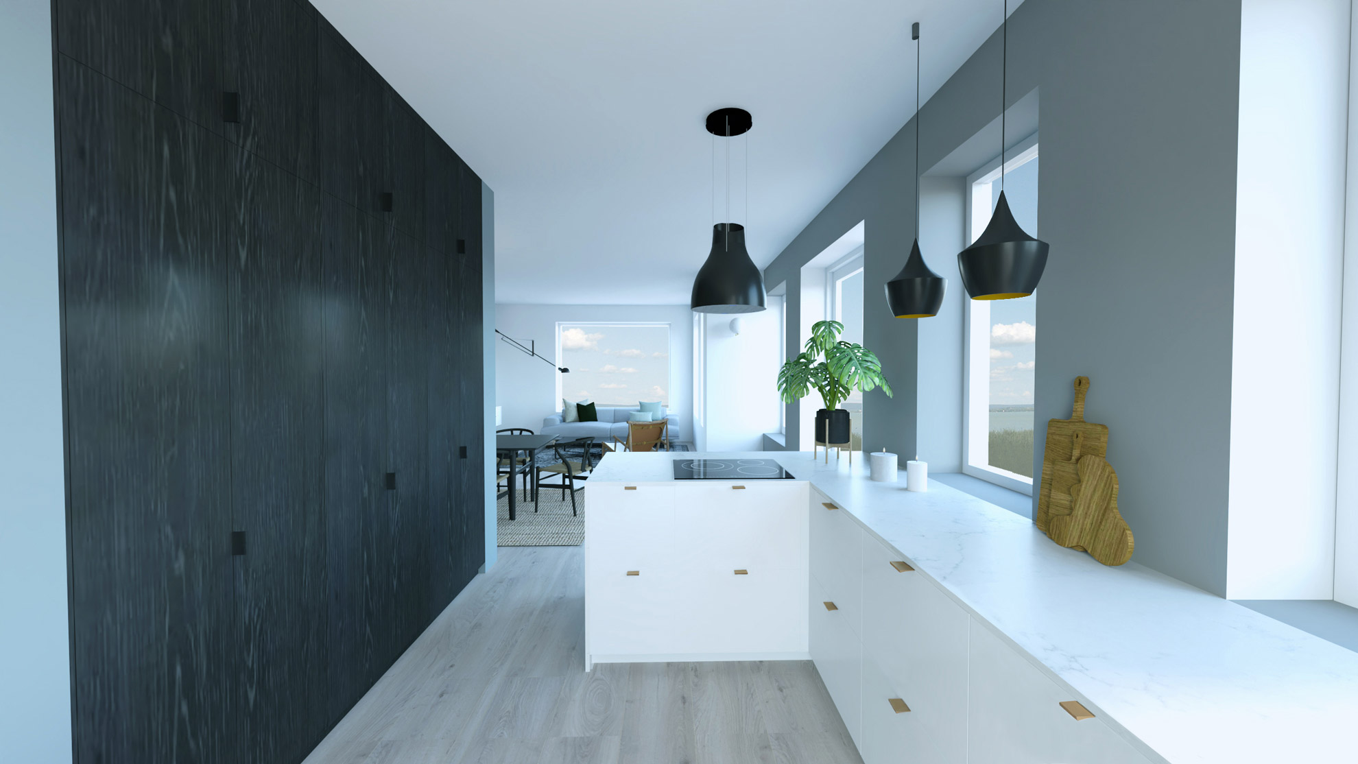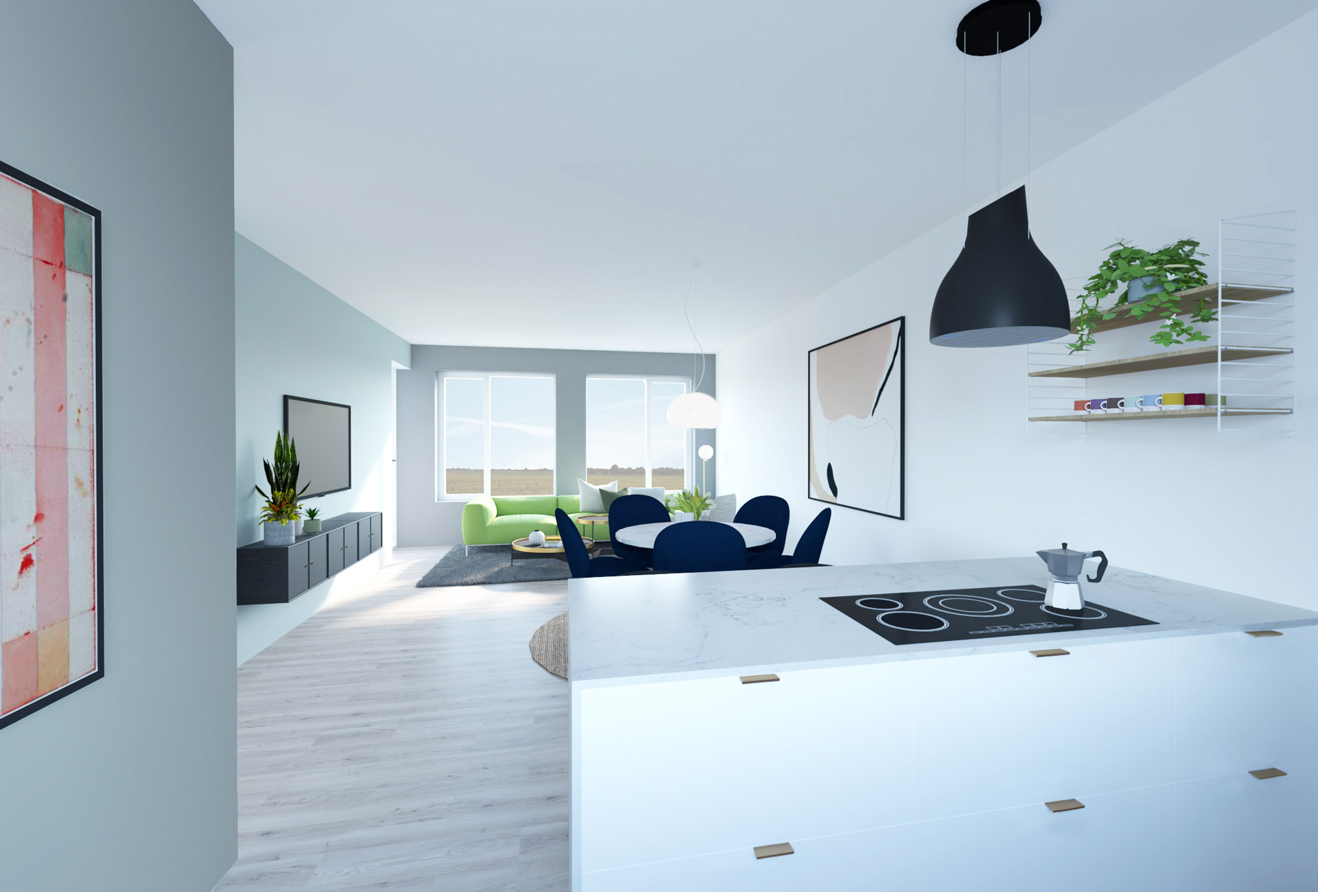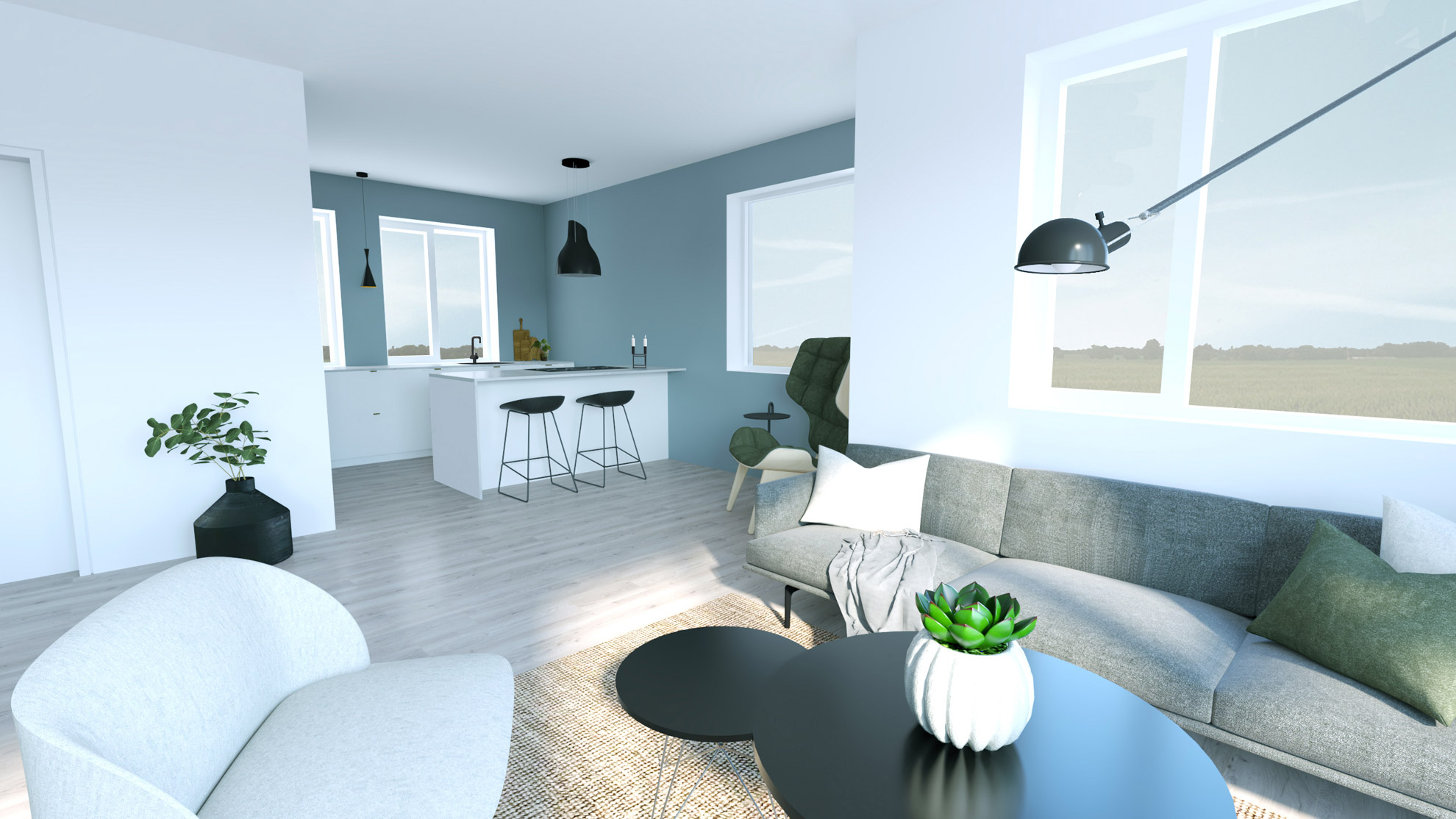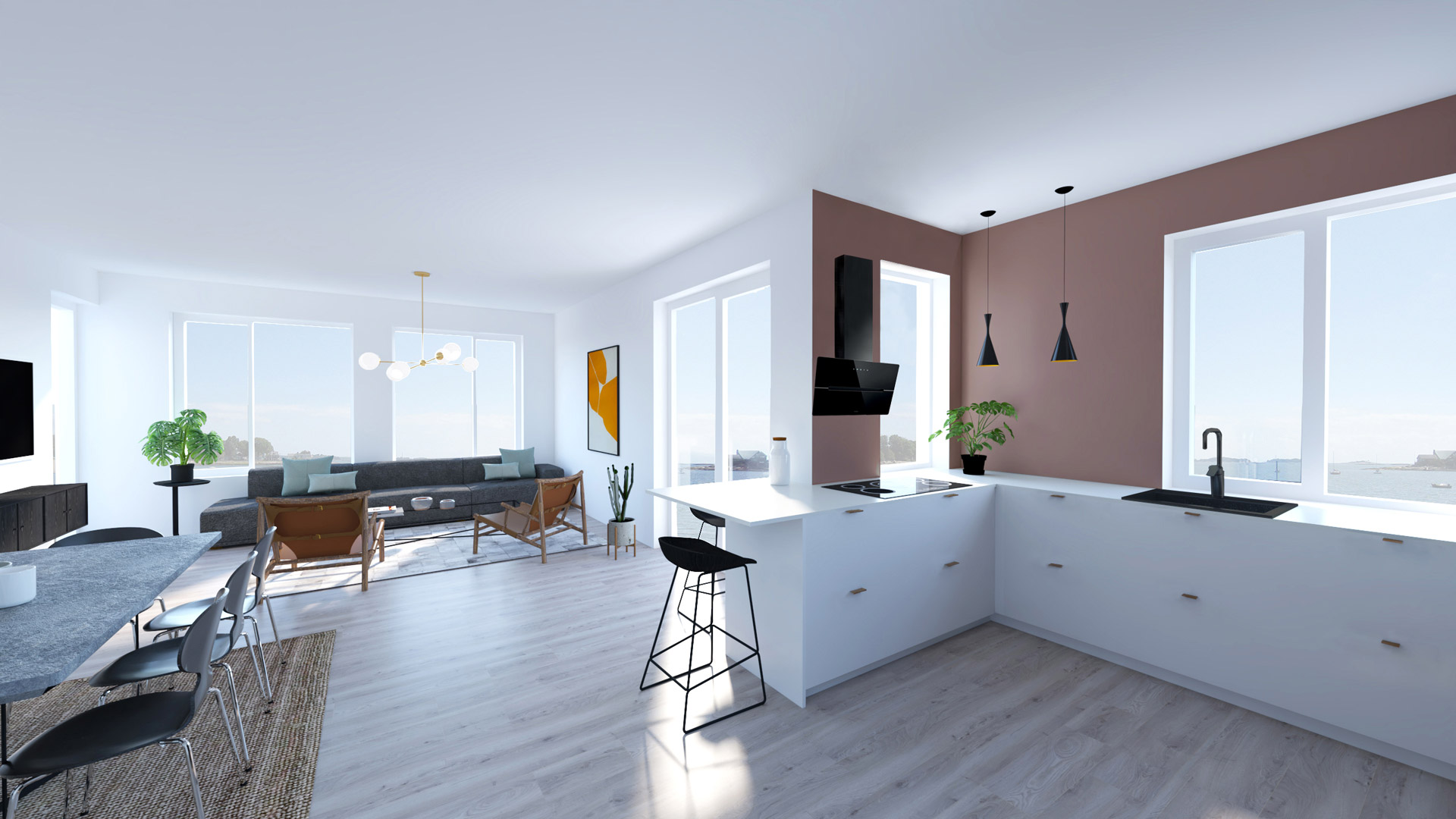 Hér má sjá tölvugerðar myndir úr mismunandi íbúðum.