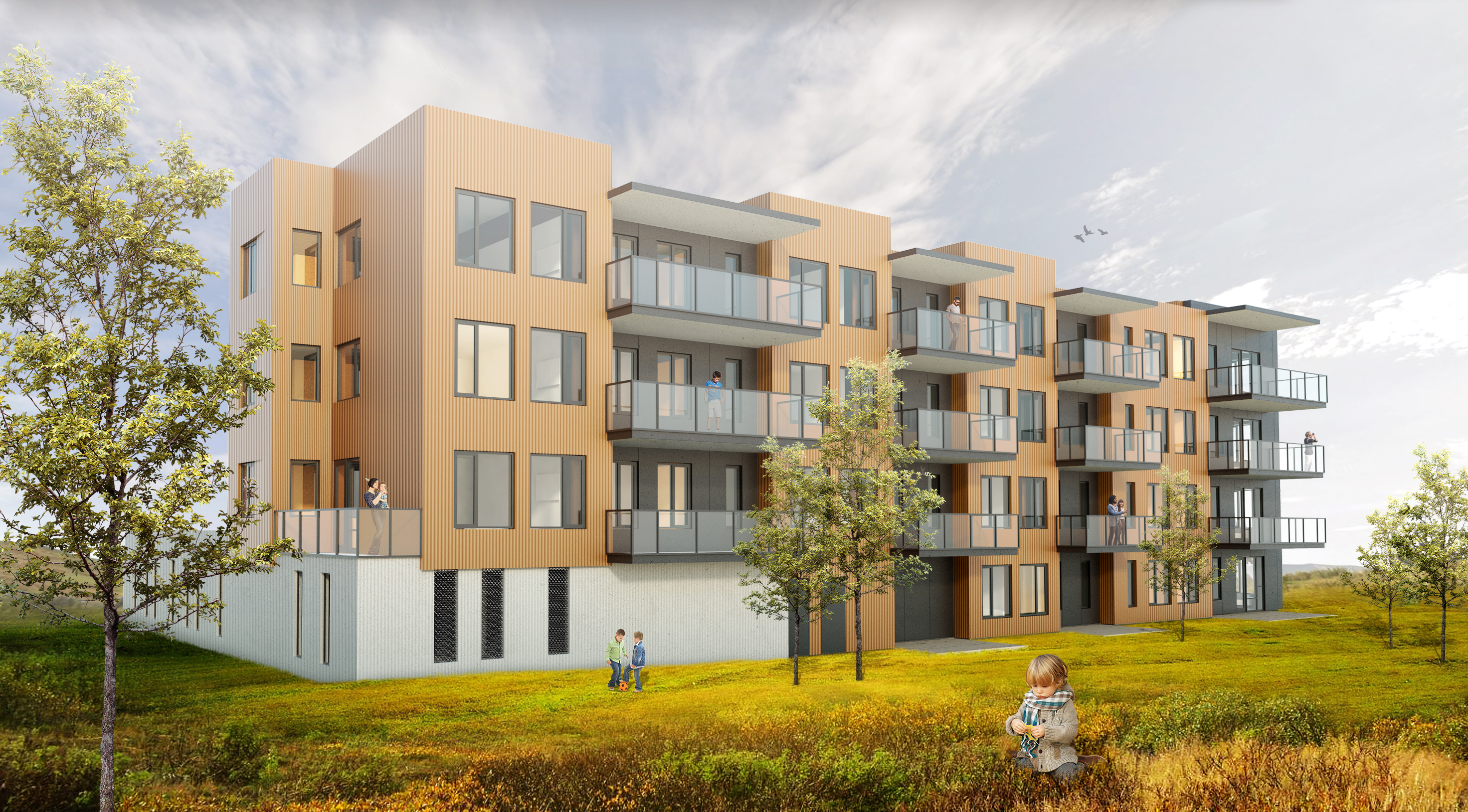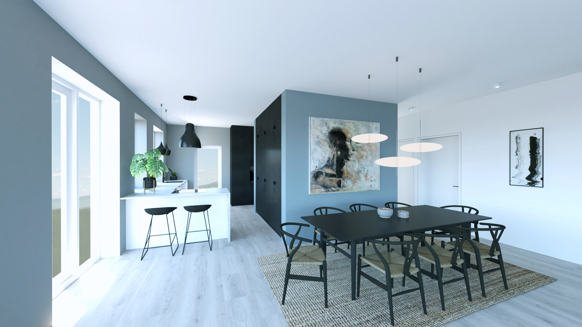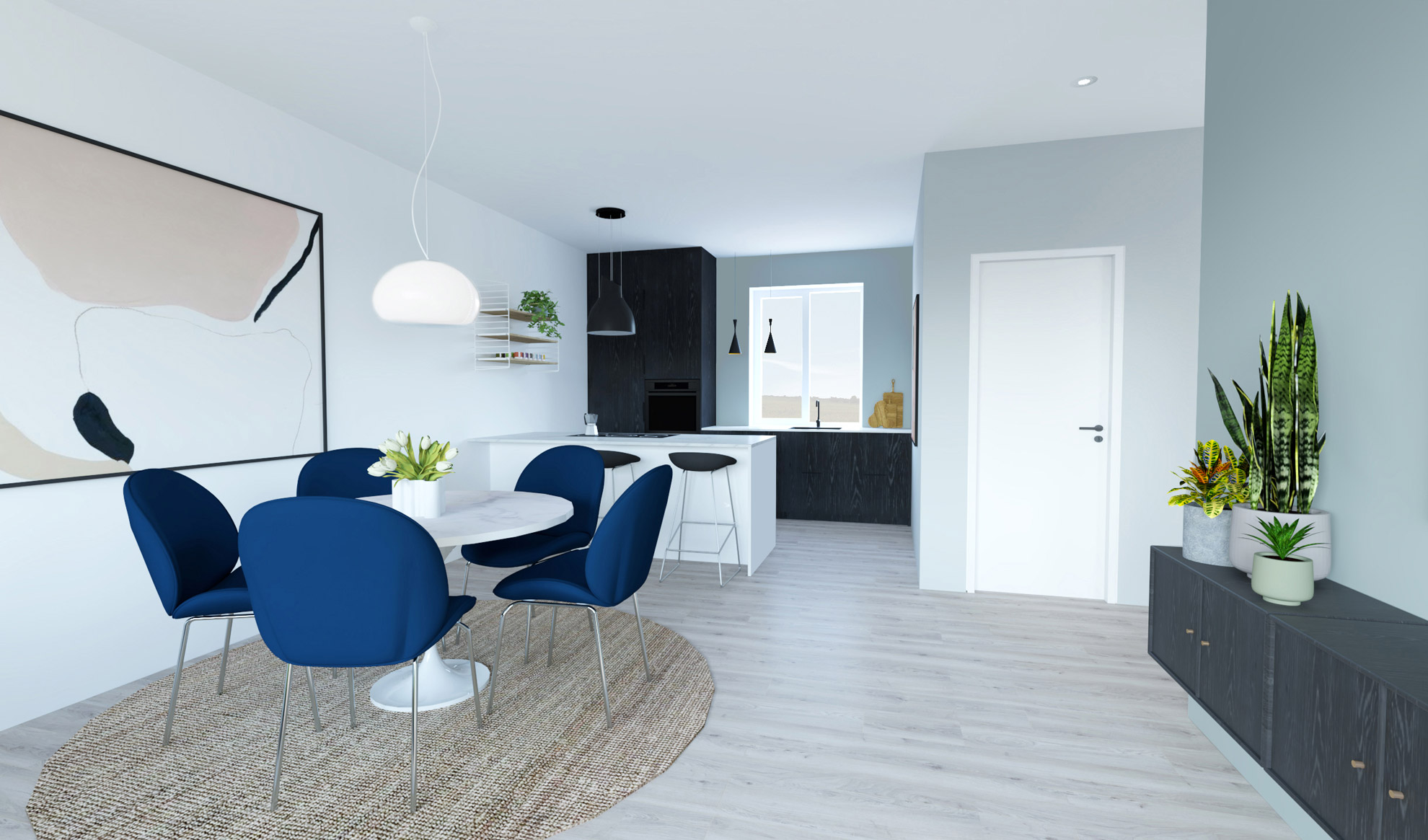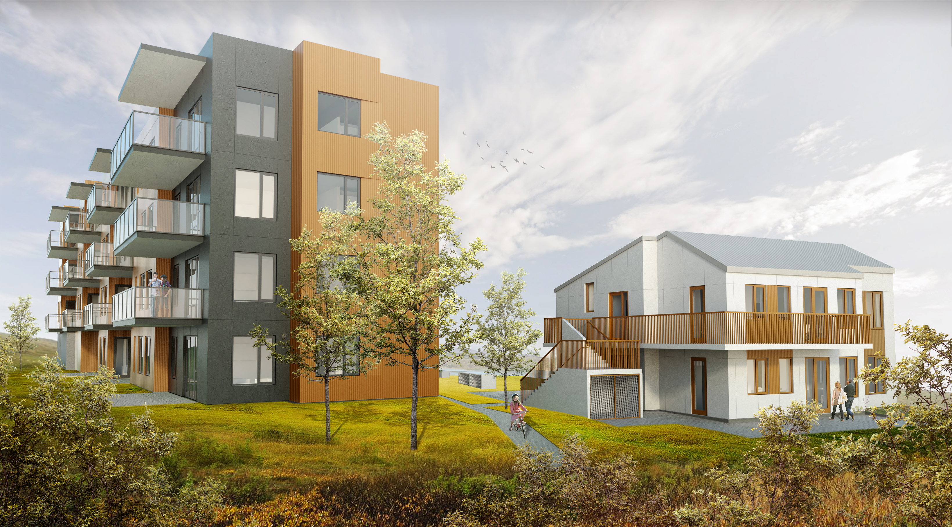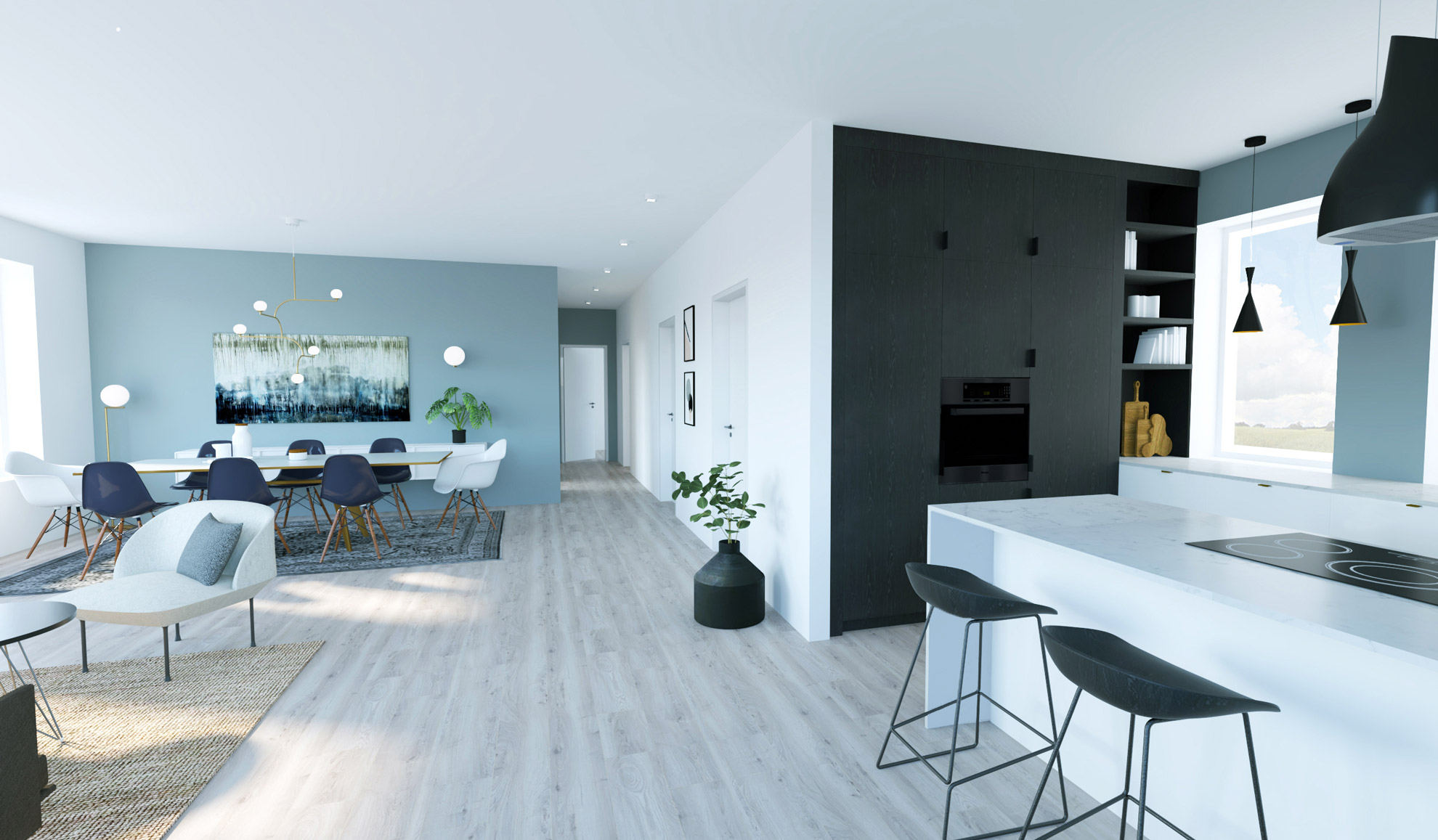Hér má sjá tölvugerðar myndir úr mismunandi íbúðum.